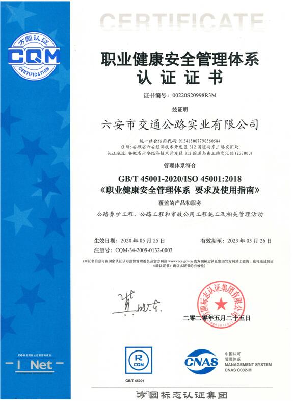 質(zhì)量、環(huán)境、職業(yè)健康安全管理體系認證證書