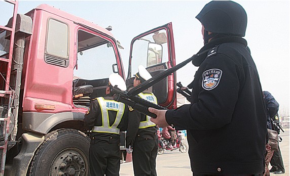 公路治超一直具有“硬碰硬”性質(zhì),六安市為配合312國道治超,出動防暴隊員,攜帶防暴槍械配合公路、運(yùn)管等部門聯(lián)合治超。記者1月4日上午趕赴現(xiàn)場,目睹在我省尚屬首次的防暴隊帶槍護(hù)衛(wèi)治超行動。